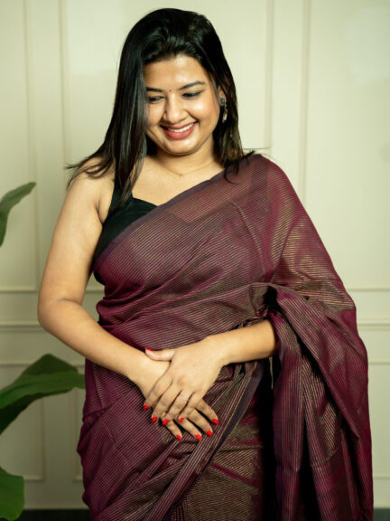 Handwoven Maroon cotton saree with Zari stripes