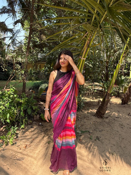 Handpainted cotton saree in purple