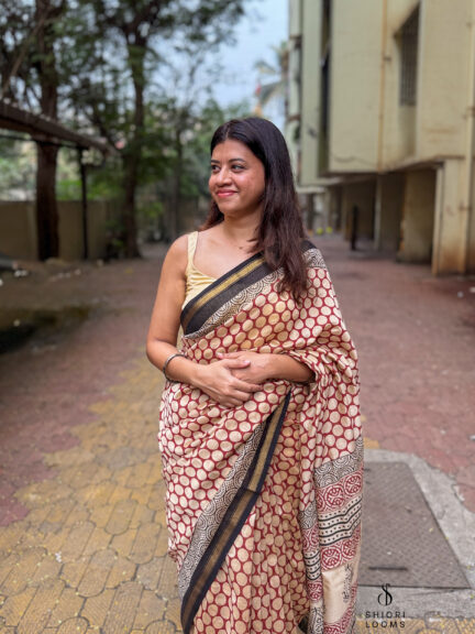 Handwoven Matka silk saree in rust orange
